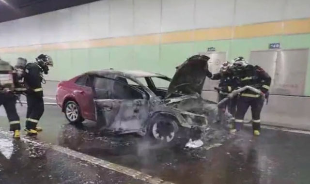 隧道內(nèi)轎車(chē)自燃,情況危急!先導(dǎo)處置車(chē)攜手消防員逆行救援。天氣炎熱,風(fēng)高物燥。空氣濕度很低,很容易發(fā)生火災(zāi)。這時(shí)突發(fā)緊急情況,隧道的一輛小轎車(chē)發(fā)生了火情,自燃了。時(shí)間緊迫先導(dǎo)處置車(chē)第一時(shí)間趕到現(xiàn)場(chǎng)進(jìn)行處置。因?yàn)樗淼辣容^狹窄,又是下班的完高峰期。自燃導(dǎo)致了高速車(chē)輛大排長(zhǎng)龍。消防車(chē)比較大開(kāi)到隧道口就沒(méi)辦法往前開(kāi)了。為了讓消防車(chē)盡快到達(dá)現(xiàn)場(chǎng)滅火。先導(dǎo)處置車(chē)的人員在指揮交通秩序。搭載消防隊(duì)員進(jìn)隧道滅火。很快現(xiàn)場(chǎng)明火被撲滅,自燃車(chē)輛被拖離。經(jīng)多先導(dǎo)處置車(chē)部門(mén)聯(lián)動(dòng)處置,快速消除車(chē)輛燃爆險(xiǎn)情,交通恢復(fù)正常。