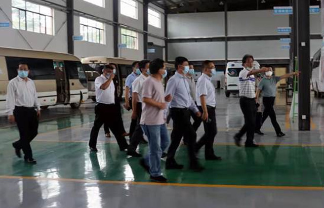 市領(lǐng)導(dǎo)們逐一參觀了正在生產(chǎn)中的醫(yī)療體檢車(chē)、救護(hù)車(chē)、移動(dòng)核酸檢測(cè)車(chē)和移動(dòng)P2實(shí)驗(yàn)室四款車(chē)型,我司技術(shù)人員向領(lǐng)導(dǎo)們介紹了不同車(chē)型的使用場(chǎng)景和功能。