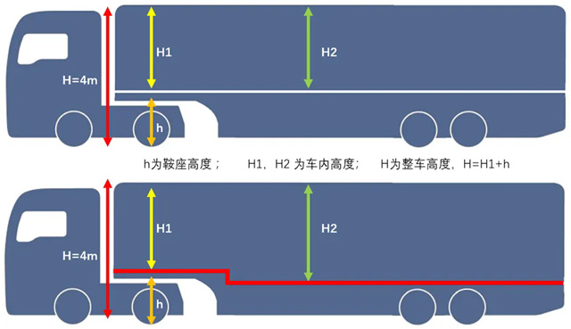 理論上車軸越多,鞍座載荷越大,如:4X2和4X4牽引車頭,一般鞍座載荷為9~11噸;6X2和6X4牽引車頭,一般鞍座載荷能夠達到17~18噸;不同廠家,不同配置,鞍座載荷略有不同。在設計布局時,一般選用4X2牽引車頭就夠用,但如果車前部重量比較大,建議選擇6X2以上牽引車頭,具體以轉播車制造商提供的車輛配重計算為準。