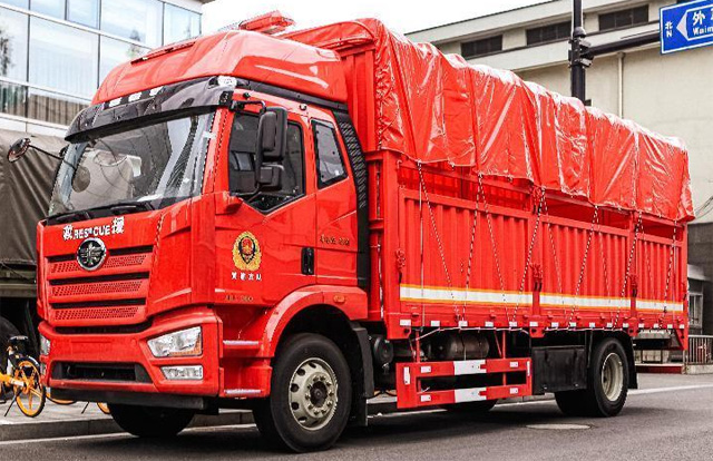 物資運輸車有各種各樣的車型品牌,有東風(fēng)天錦、重汽、陜汽等。6米8, 高頂雙臥,18噸總質(zhì)量,花籃車廂,解放這代中卡風(fēng)格獨到,立體感很足。高頂雙臥駕駛室,適合多位駕駛員輪班。如果遇到跨地區(qū)長距離增援,這輛車可以兩個駕駛員輪班,屬于先天性的優(yōu)勢了。260馬力的大柴CA6DK1-26E6國六發(fā)動機,排量7.2升,260馬力,1000N.m的扭矩,各方面表現(xiàn)都非常優(yōu)秀。物資運輸車匹配的應(yīng)該是解放的8擋手動變速箱。前橋采用了解放最新的F4N-1900中卡橋,載重量5.5噸級別,后橋則是解放的378橋,速比有多種可選,前后橋均采用了十孔螺栓結(jié)構(gòu),并且搭配了275/80R22.5的輪胎,整車也采用了板簧懸架。左側(cè)車架甚至連經(jīng)典的器材箱都完好保留,除此之外,鋁合金氣瓶、解放的氣驅(qū)尿素和空濾看得一清二楚。油箱位于車架右側(cè),鋁合金油箱容積400升。物資運輸車整車基本沒有針對消防做特殊化改裝,除欄板高度較高。物資運輸車食品、器材等基本上絕大部分物資的運輸,既可以尾開門卸貨,也可以側(cè)開門卸貨。