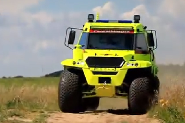 TORSUS PRAETORIAN,捷克共和國制造的大容量高性能車型??梢暂p松的穿越困難地形將病患從人跡罕至的地方運(yùn)送到醫(yī)療機(jī)構(gòu)。大型車長8.4米,總重量是13.4噸。有3個(gè)擔(dān)架的放置空間,配備了一個(gè)自動(dòng)舉升的系統(tǒng)。搭載一臺(tái)290馬力的發(fā)動(dòng)機(jī),最大扭矩為1150牛米,最高時(shí)速100公里每小時(shí)。