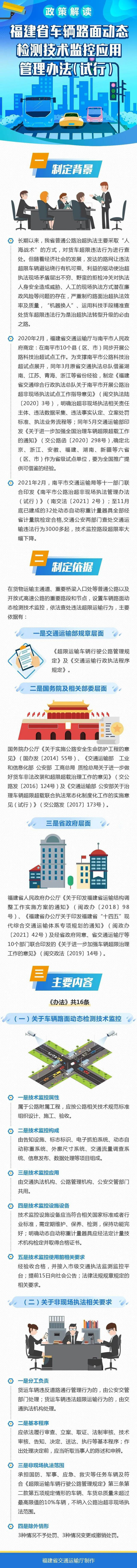 為加強(qiáng)道路貨物運(yùn)輸車輛超限超載治理,規(guī)范道路運(yùn)輸非現(xiàn)場執(zhí)法工作監(jiān)測車動態(tài)檢測,車輛路面動態(tài)檢測技術(shù)監(jiān)控由告知設(shè)施、標(biāo)志標(biāo)識、電子抓拍系統(tǒng)、動態(tài)自動稱重系統(tǒng)、外廓尺寸系統(tǒng)、交通流量調(diào)查系統(tǒng)、信息發(fā)布、數(shù)據(jù)處理等項(xiàng)目組成。車輛路面動態(tài)檢測技術(shù)監(jiān)控的電子抓拍系統(tǒng)由公安交管部門接入應(yīng)用,用于查處貨運(yùn)車輛通過檢測區(qū)域不按規(guī)定車道行駛等涉嫌違反道路交通安全規(guī)定的行為;動態(tài)自動稱重及外廓尺寸系統(tǒng)由交通執(zhí)法機(jī)構(gòu)接入應(yīng)用,用于非現(xiàn)場查處貨運(yùn)車輛通過檢測區(qū)域違反超限運(yùn)輸管理等違法行為;交通流量調(diào)查系統(tǒng)由公路管理機(jī)構(gòu)接入應(yīng)用。如何查處《辦法》要求,車輛路面動態(tài)檢測技術(shù)監(jiān)控使用前應(yīng)提前15日向社會公告,運(yùn)用車輛路面動態(tài)檢測技術(shù)監(jiān)控非現(xiàn)場查處貨運(yùn)車輛超限運(yùn)輸違法行為應(yīng)依法履行審查、立案、取證、法制審核、技術(shù)審核、告知、決定、送達(dá)、執(zhí)行等基本程序。