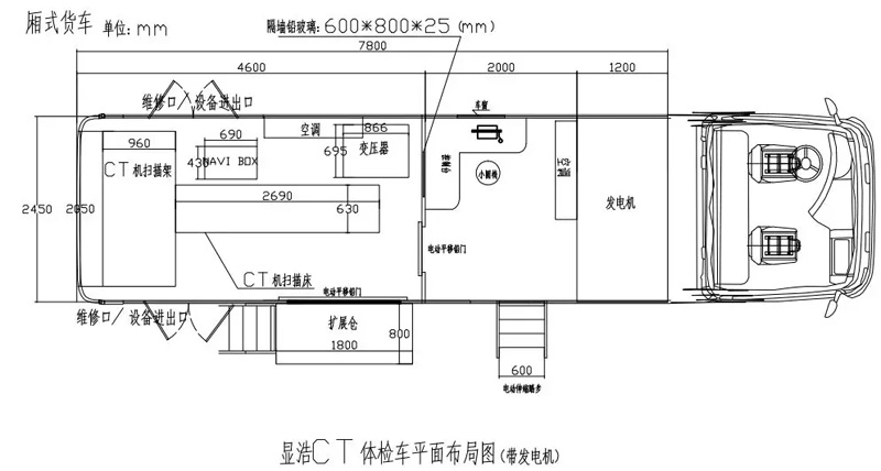 12米慶鈴五十鈴貨車底盤為基礎(chǔ)的貨車版顯浩牌XHA5180XYL03醫(yī)療車,車載CT主要應(yīng)用在前期的篩查診斷上。它機(jī)動(dòng)性強(qiáng),可應(yīng)用于需要的特定區(qū)域;安全性高,可避免轉(zhuǎn)運(yùn)引起的交叉感染和擴(kuò)散風(fēng)險(xiǎn);掃描范圍廣,可應(yīng)用于全身部位的掃描;影像穩(wěn)定清晰,滿足臨床診療需要。掃描室底部預(yù)埋了15mm厚度的鋼板用于CT機(jī)的固定,確保車輛行駛過程中CT機(jī)不會移動(dòng)。由于CT機(jī)工作時(shí)功率大,會產(chǎn)生大量的熱量,使得小小的掃描室溫度升高,掃描頂部裝有2臺1.5P頂置空調(diào),保證室內(nèi)的溫度適宜。頂部的換氣扇可以將有害的電離空氣排出,保證空氣流通,有利于醫(yī)生和檢查人員的健康。