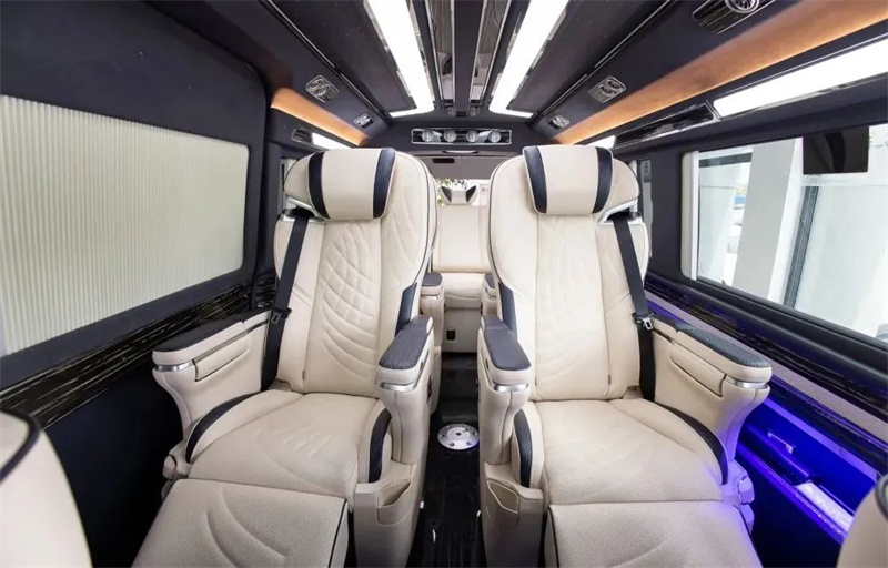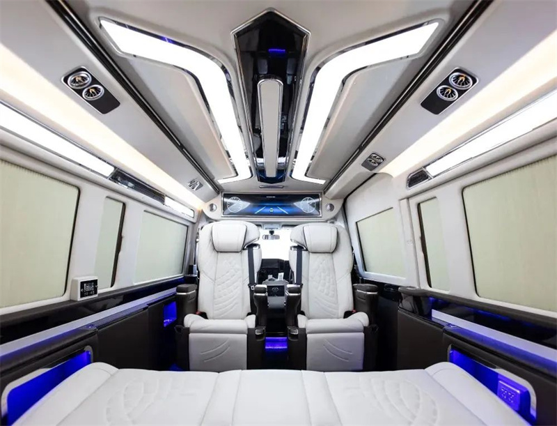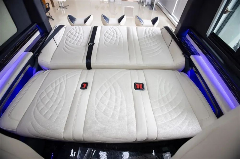改裝商務(wù)車三連排的沙發(fā)床也可以180度的平躺,方便日常出行困了累了能夠及時的休息。頂部豪華定制頂燈,造型美麗,色彩鮮明,多款顏色切換,點點星星的頂部襯托著整車,氛圍感也得安排上。